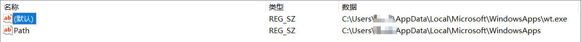 关于方案 1:需要修改注册表中的值: HKEY_CURRENT_USER\SOFTWARE\Microsoft\Windows\CurrentVersion\App Paths\wt.exe 下从 C:\Program Files\WindowsApps\Microsoft.WindowsTerminal_1.12.10983.0_x64__8wekyb3d8bbwe\ 路径到 C:\Users\用户名\AppData\Local\Microsoft\WindowsApps\ ,实测可行,如下图: